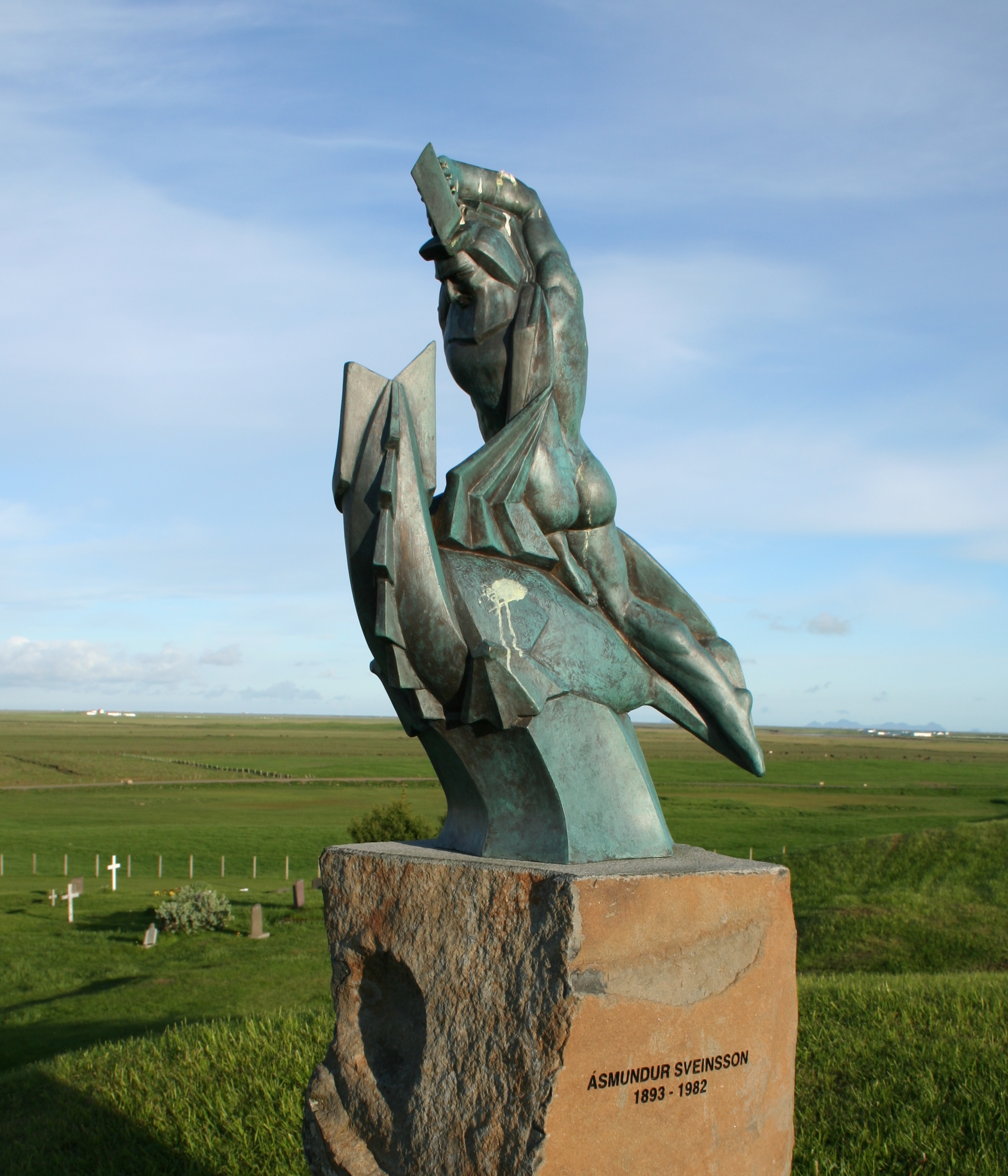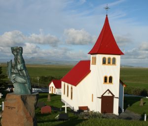 The current church in Oddi was built in 1924 and has many significant artifacts. Next to the church is the sculpture of Ásmundar Sveinsson, ‘Sæmundur on the seal’, but the prototype stands in front of the main building of the University of Iceland in Reykjavík.